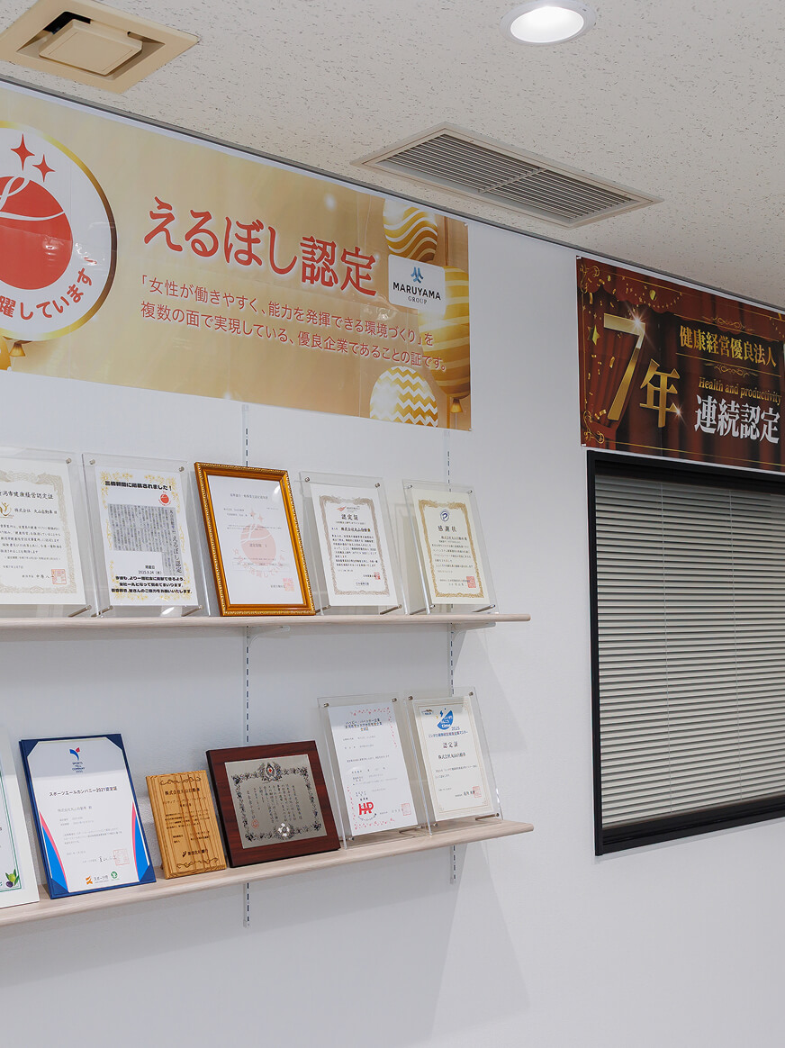 経済産業省が推進する健康経営優良法人認定制度において、大規模法人部門の上位500社に与えられる称号です。 県内では毎年3~4社のみが認定!社員の働きやすい環境作りに注力しています