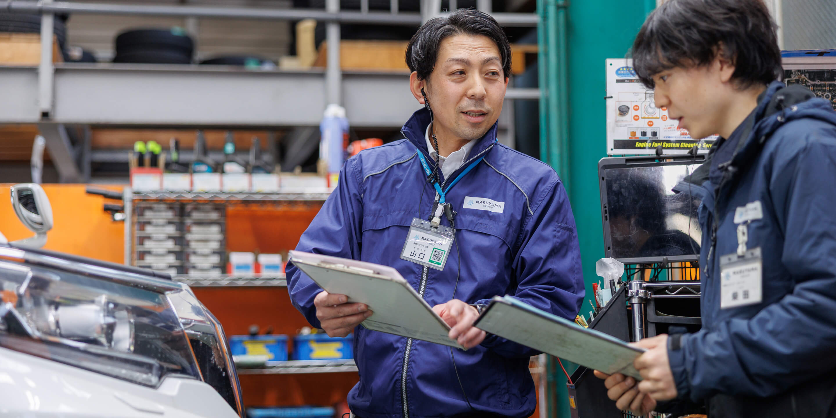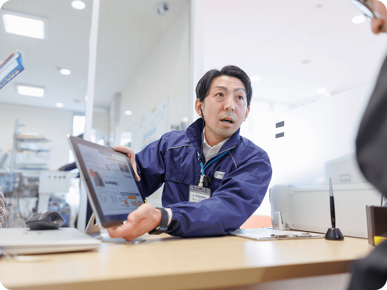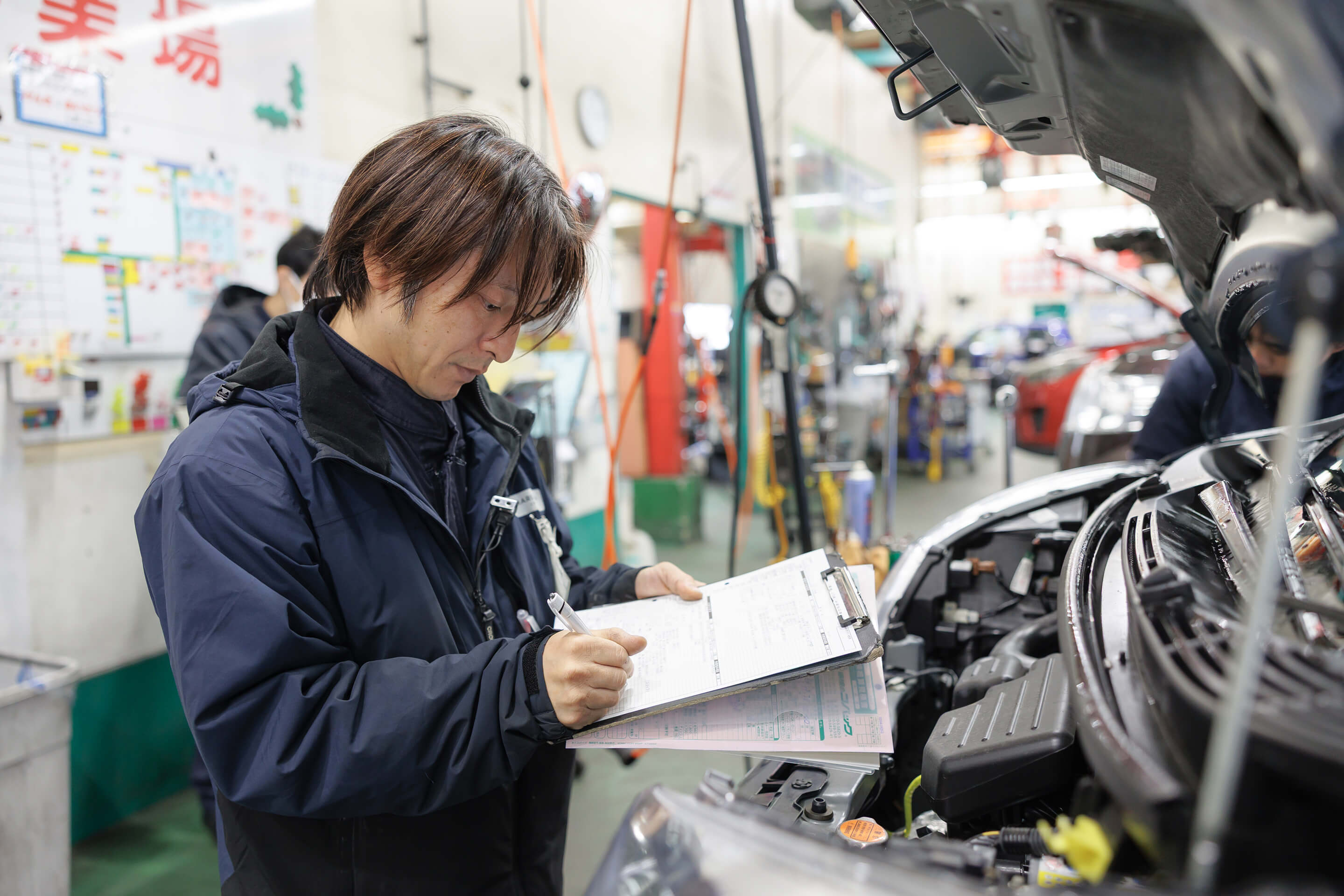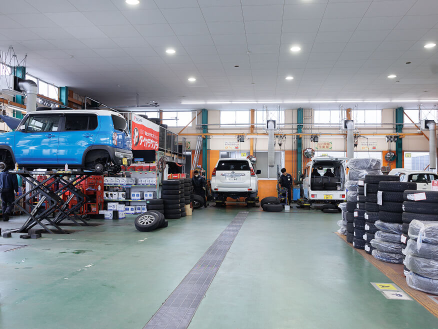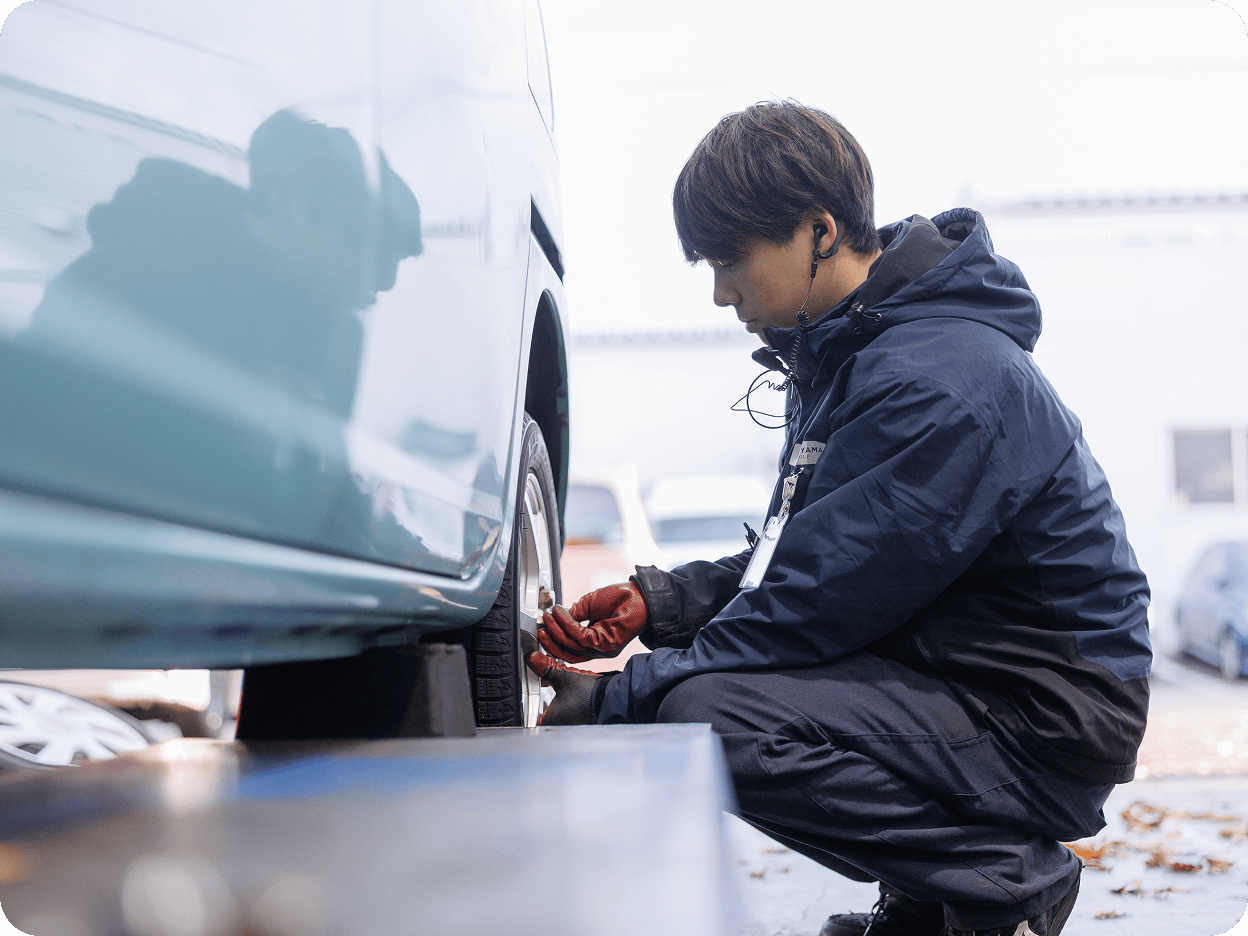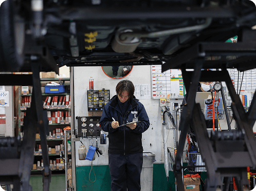 1台の車を複数名で整備する独自の体制は、スピーディーかつ正確なサービスを可能にし、お客様からの高い信頼にもつながっています。