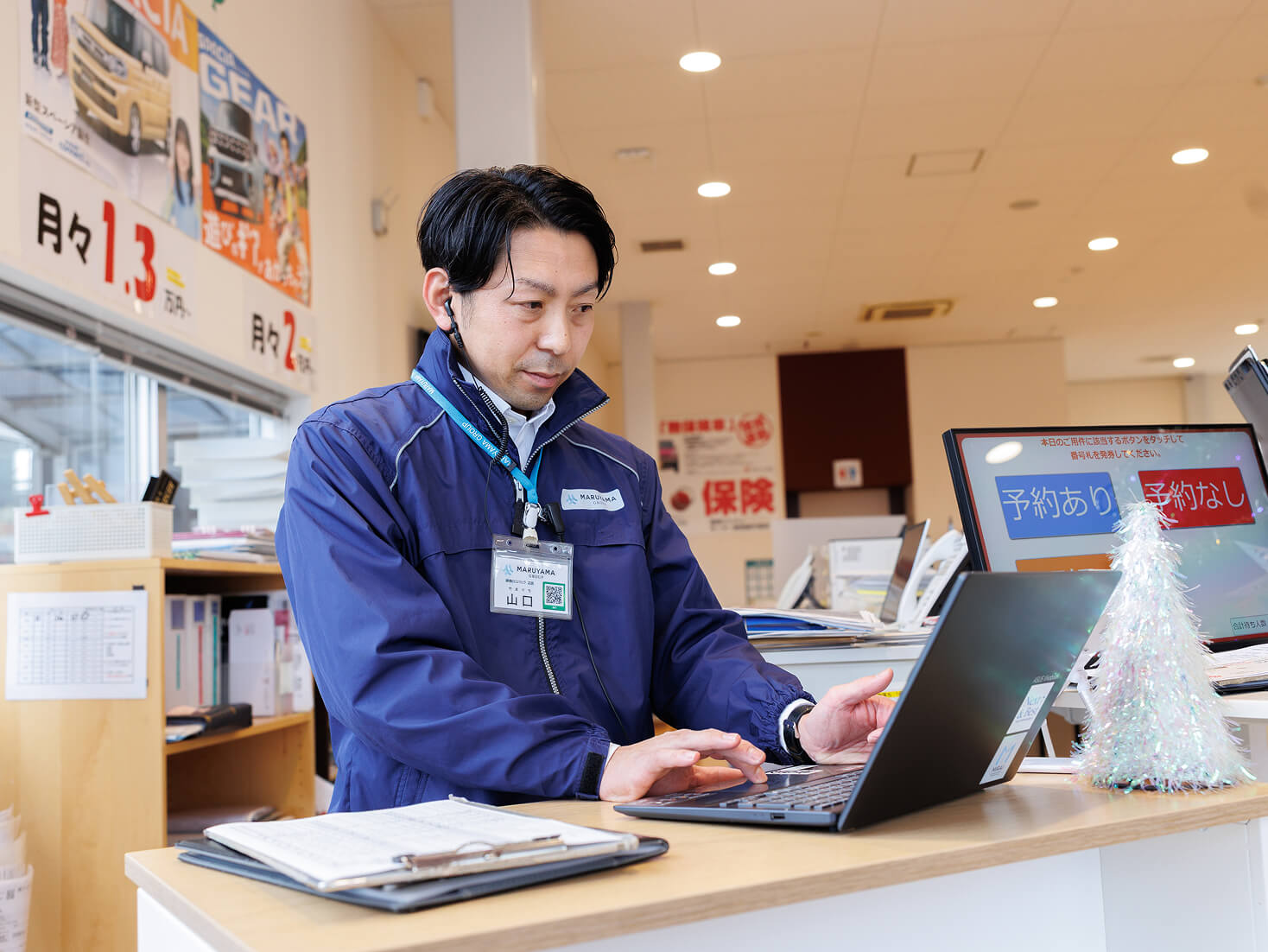 前職でも整備の現場を経験している山口店長に、MARUYAMA GROUPの働き方について聞きました。