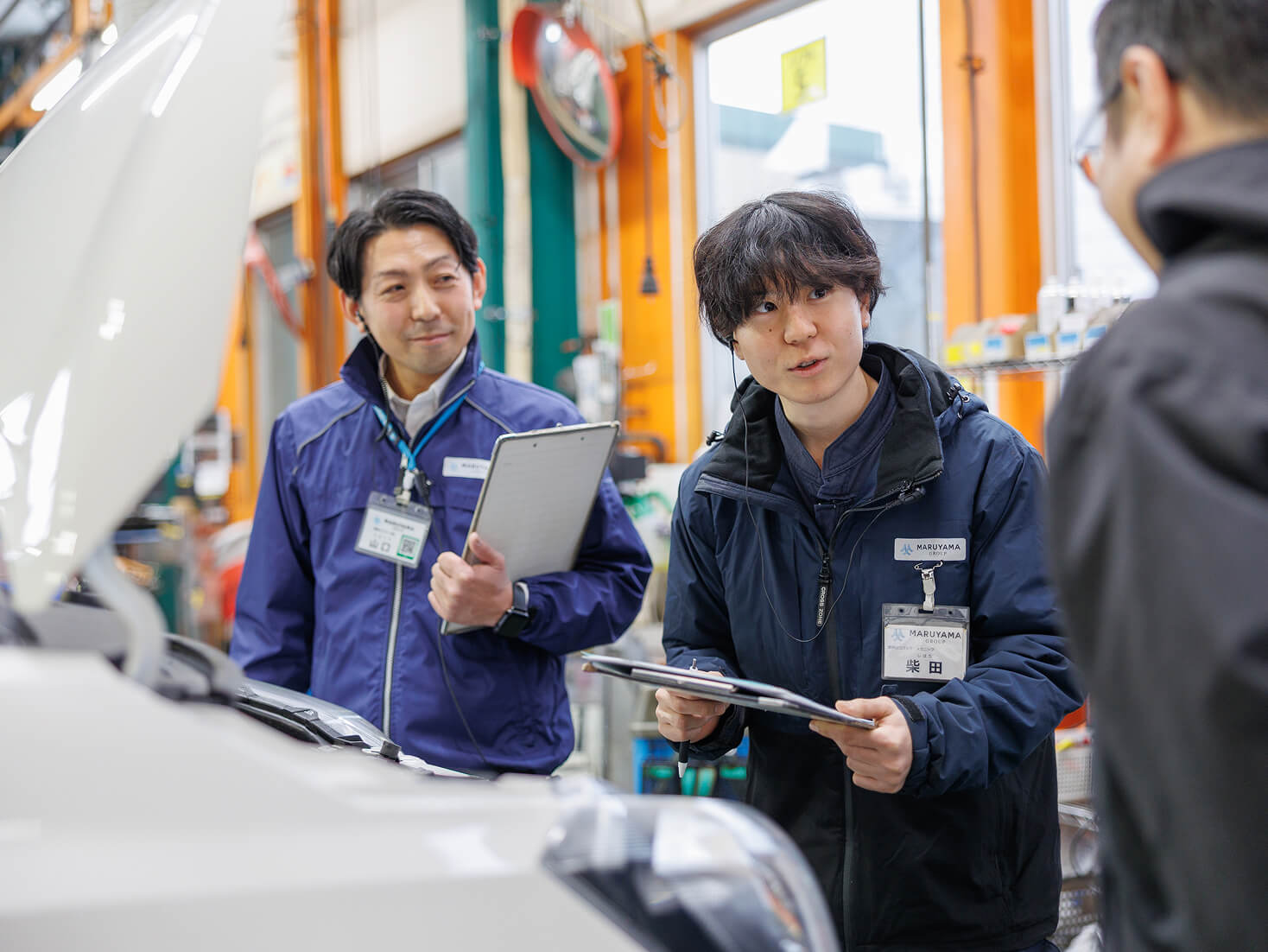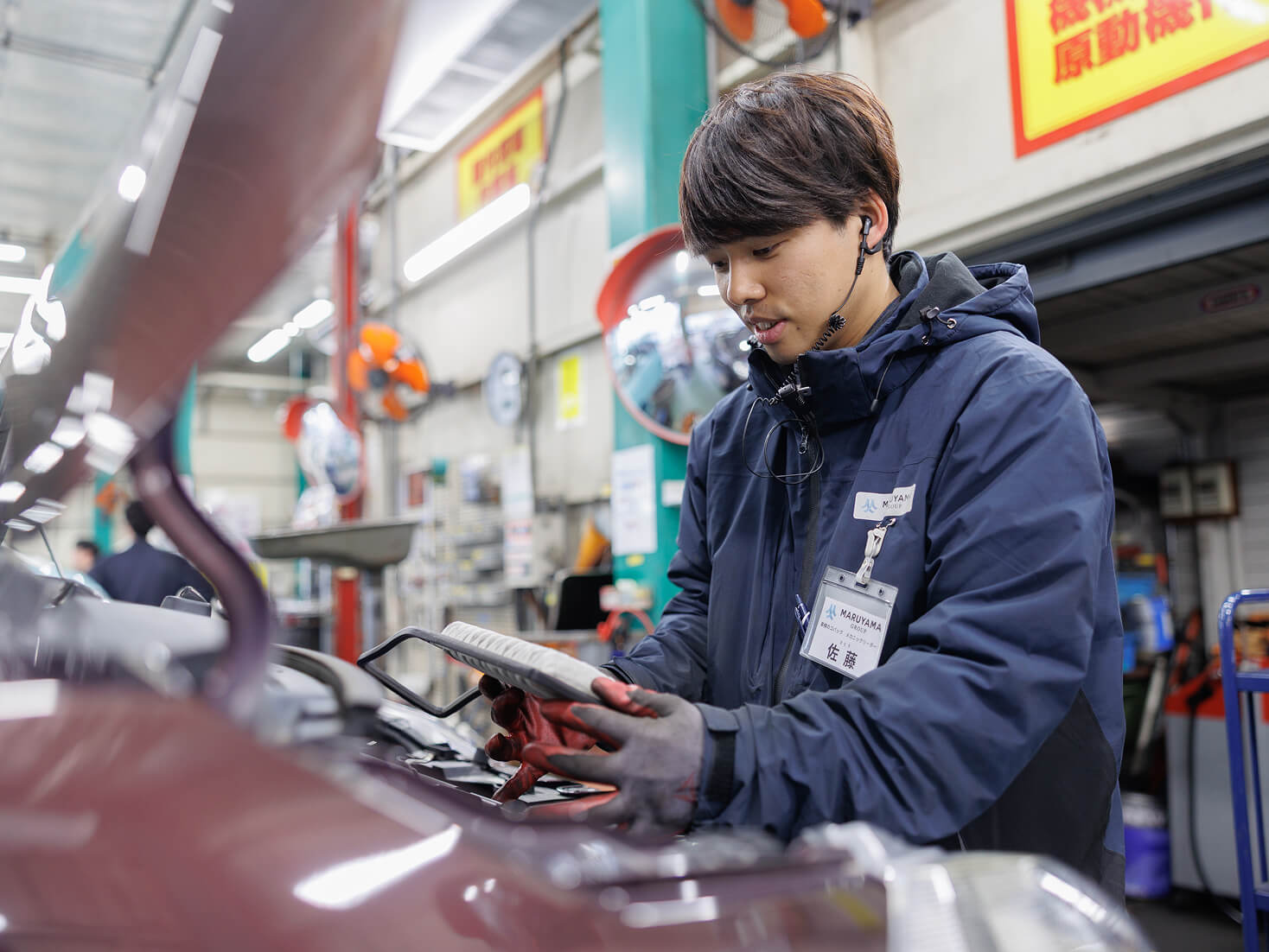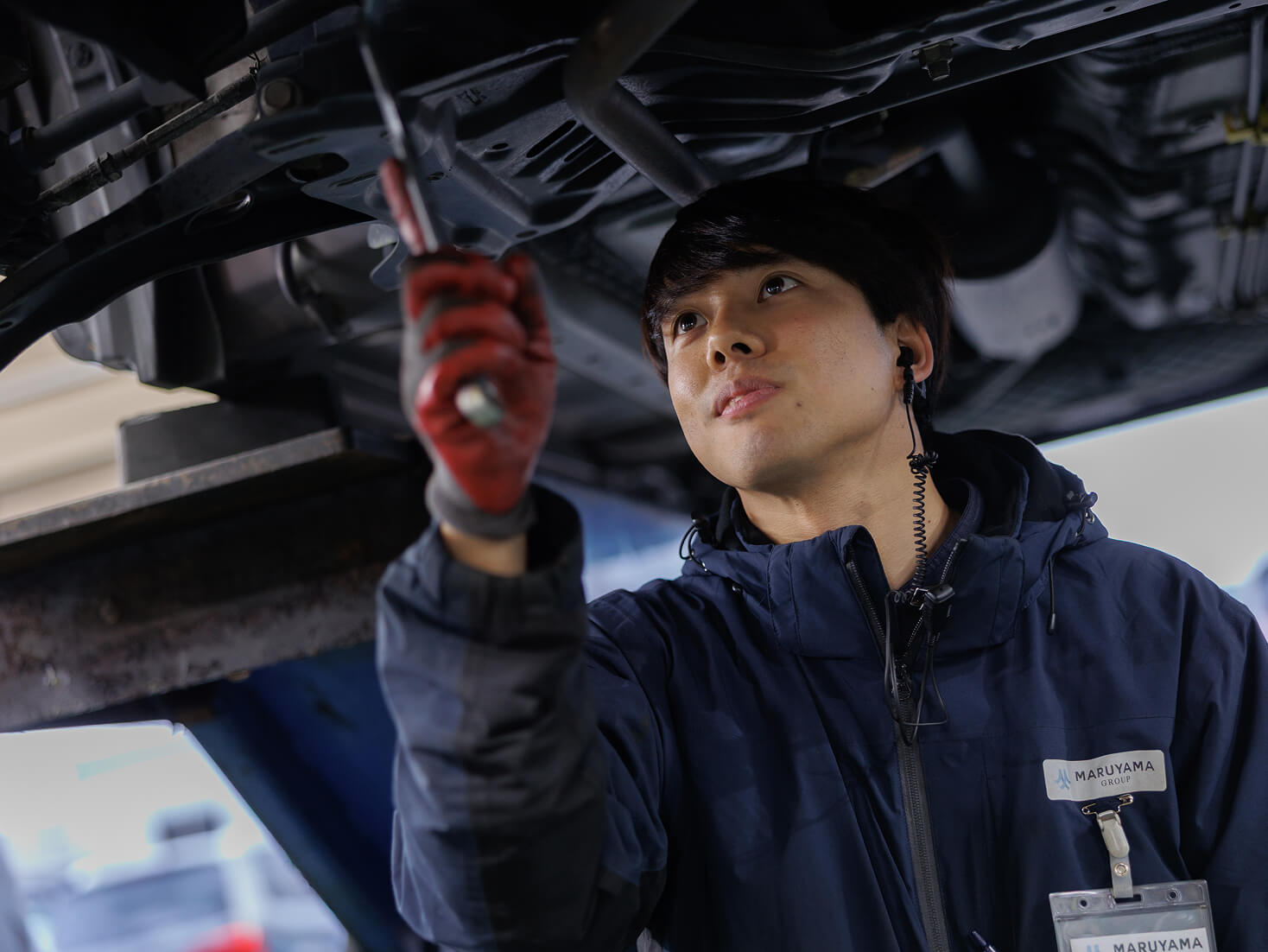 「自動車関係の仕事に興味があったものの、専門的な知識も経験もありませんでした。MARUYAMA GROUPを選んだのは、未経験でも採用の門戸が広がっていたことと、資格取得のための福利厚生が手厚いことに魅力を感じたから。私と同じく未資格で整備職の道を選ぶ人は新卒・中途問わずいるので、経験がなくとも、同じ仲間として迎え入れてくれる職場であることに間違いありません」