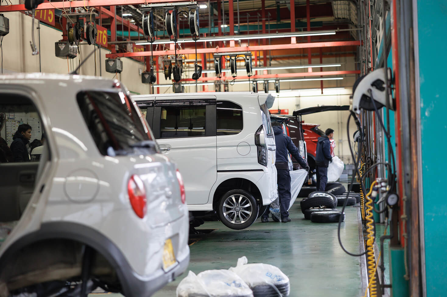「当社は、1台のお車に対して複数名で整備と点検を行います。このやり方が多くの台数をスピーディーに対応できる秘密であり、他の整備会社さんとのいちばんの違いです。そのため、当社の整備士は、他者と協力できる人間性を持っています。その力が備わっていれば、十分です。