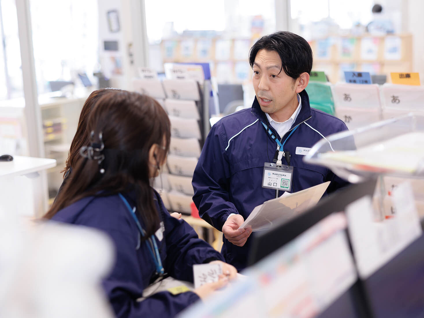 MARUYAMA GROUPには明確な評価制度があり、それにより昇級・賞与が決定します。年齢や学歴、職歴等に左右されず、取り組みや成果がしっかりと待遇に反映される仕組みが整っています。実際に山口店長と佐藤さんからは、「ちゃんと評価されていると感じている」との声が聞かれました。